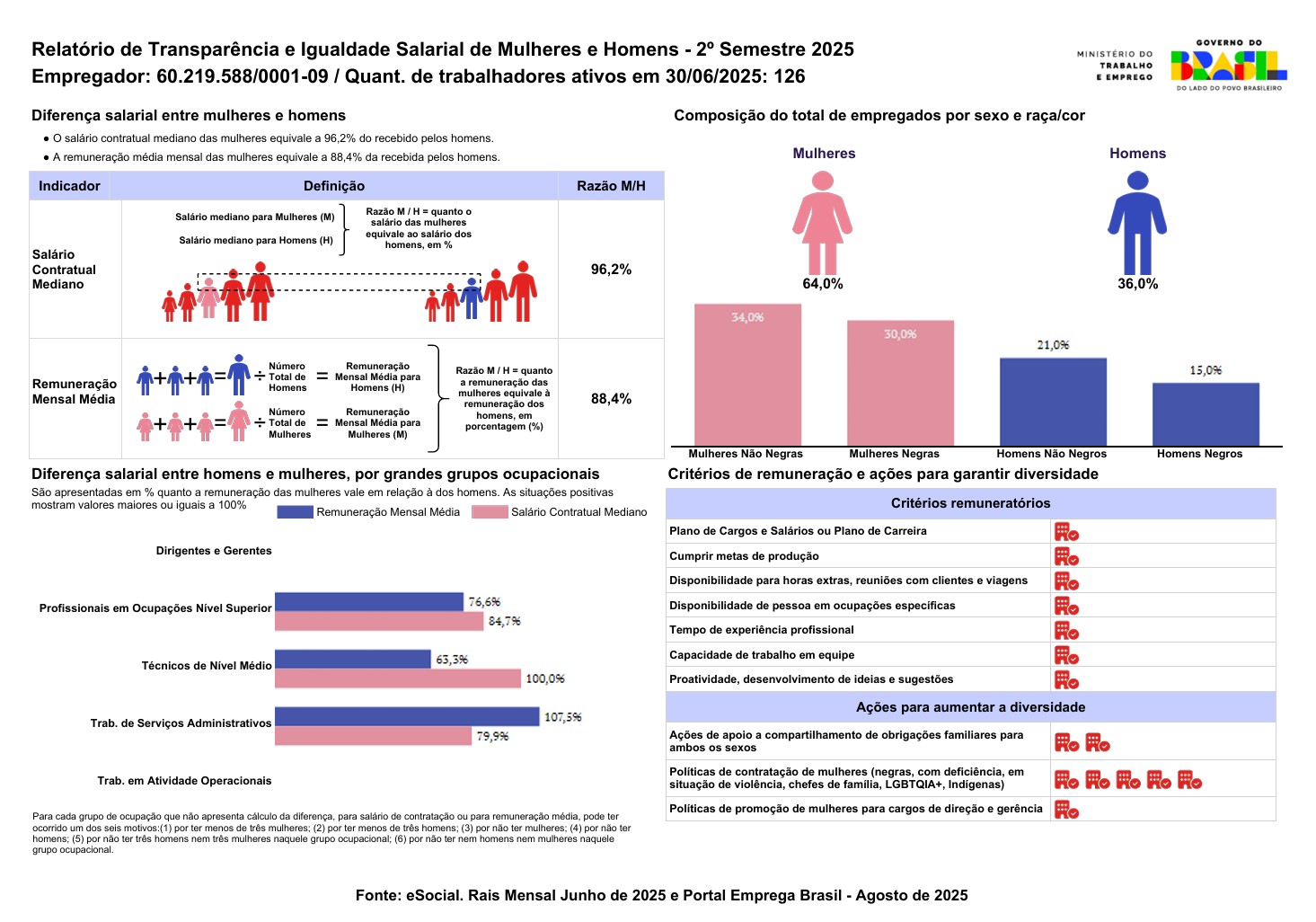 Este relatório apresenta dados sobre transparência salarial e igualdade de gênero na Graj e Gestao e Folha de Pagto LTDA, em conformidade com a legislação brasileira (Lei nº 14.611/2023) e nosso compromisso com a equidade no ambiente de trabalho.